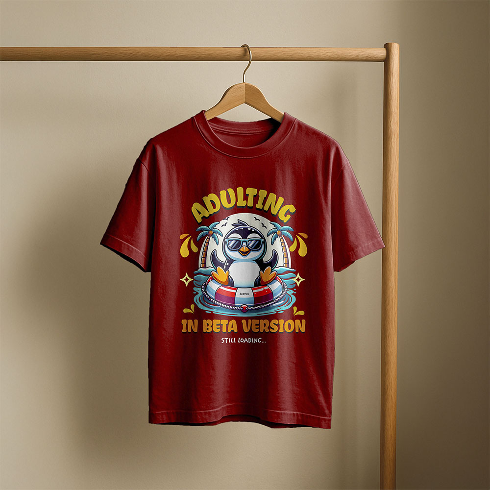 Still loading, still figuring it out. This printed oversized tee features a cool penguin floating with the line “Adulting in Beta Version.” A playful take on growing up, it’s oversized, soft, and made for anyone who knows adulthood is a work in progress.