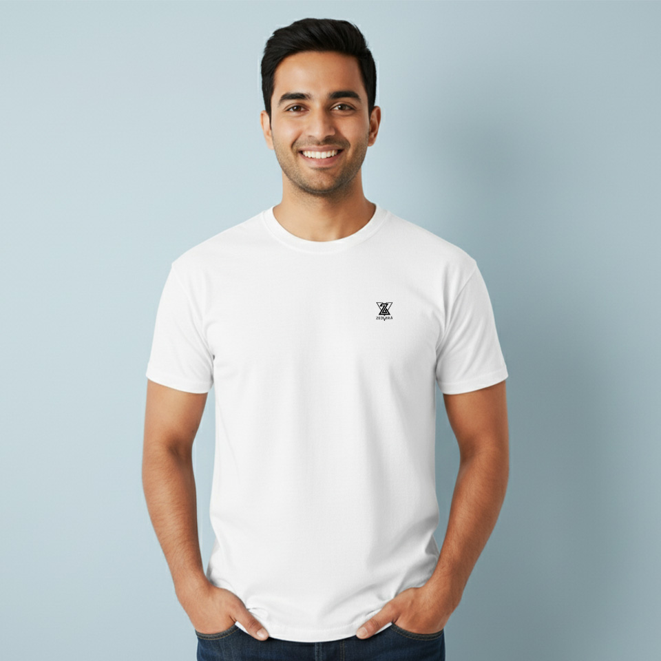 The classic white tee—redefined. Made from 100% ring-spun super combed cotton (180 GSM), it’s lightweight yet durable, with the softness only long-staple, contaminant-free cotton can deliver. The half-sleeve cut gives it an easy everyday fit, while its bio-wash finish ensures it stays bright and fresh.