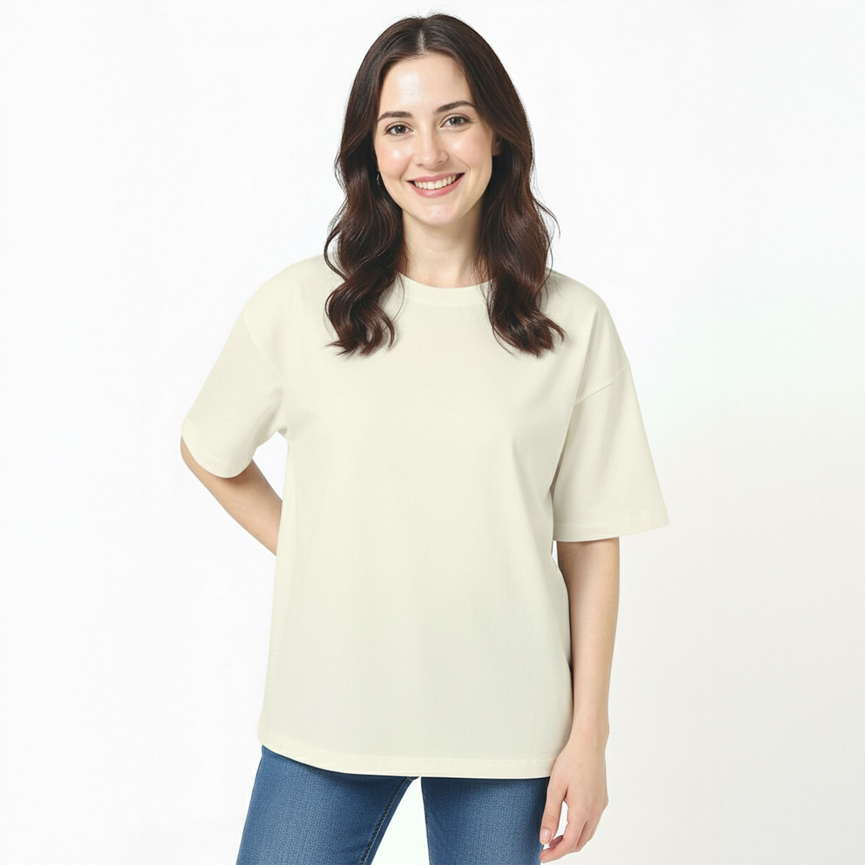 Women’s Off-White Cotton Solid Oversized T-Shirt